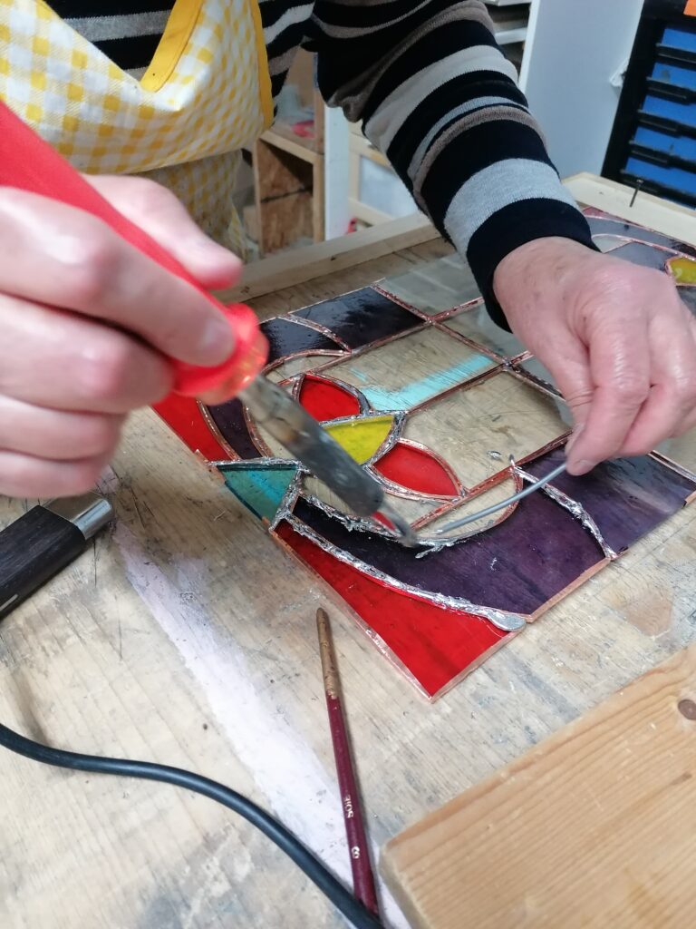 Ces stages de découverte ou de perfectionnement vous permettent d’apprendre à réaliser vous-même votre vitrail au plomb ou au Tiffany. Quel que soit votre niveau, Angéline y enseigne l’ensemble du processus, de A à Z : depuis le dessin jusqu’à la mise en plomb, en passant par la coupe du verre, le montage, la soudure et le mastic.